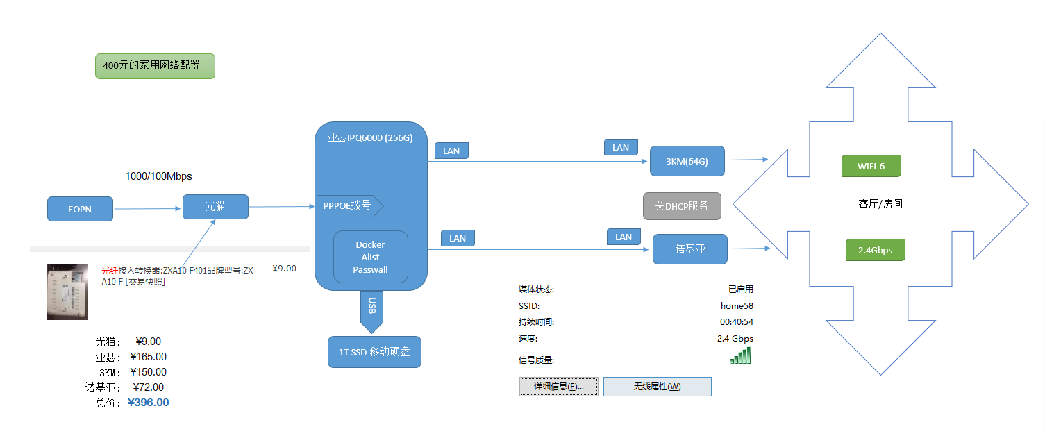 | 主路由 | 亚瑟IPQ6000 | 1+256G,1USB,4口千兆 | 165.00 | 1 | 165.00 |